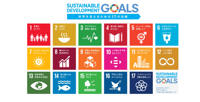 SDGs とは、Sustainable Development Goalsの略であり、日本語では『持続可能な開発目標』と訳されます。国連が定めた2016年から2030年までに世界が達成すべき持続可能な開発目標を指します。『持続可能な開発』というのは「将来の世代のニーズを損ねることなく、現在の世代のニーズを満たす開発」を意味しています。SDGs は健康と福祉の増進、技術革新、気候変動への対応などの先進国の課題や環境問題もその目標に加えられており、グローバルな環境や社会に関する17の目標と169の小目標で構成されています。これらは環境の保全、経済の開発、社会の発展を調和の下に進めていくことを意味します。