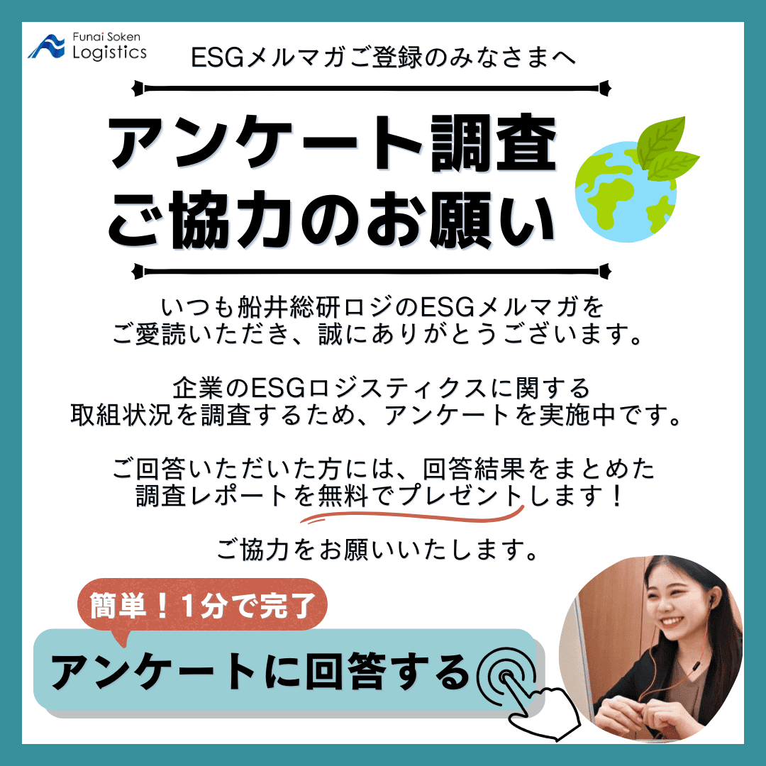 企業のESGロジスティクスに関する取組み状況を調査するため、アンケートを実施中です。