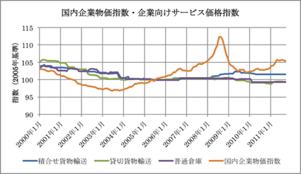 図2に物流に関する企業向けサービス価格指数を挙げているが、2004年までは上記のような手法でのいわゆる単価ダウンが可能であったが、それ以降は単価が下げ止まっていることが伺える。実際のコンサルティング現場での感覚は、今でも案件によっては単価ダウンが可能な場合も見られるが、その割合は年々低下していると感じられる。