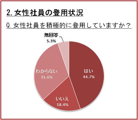 そもそも、物流企業は女性社員の登用に対してどのように考えているのでしょうか。(下記グラフ 2.女性社員の登用状況参照)