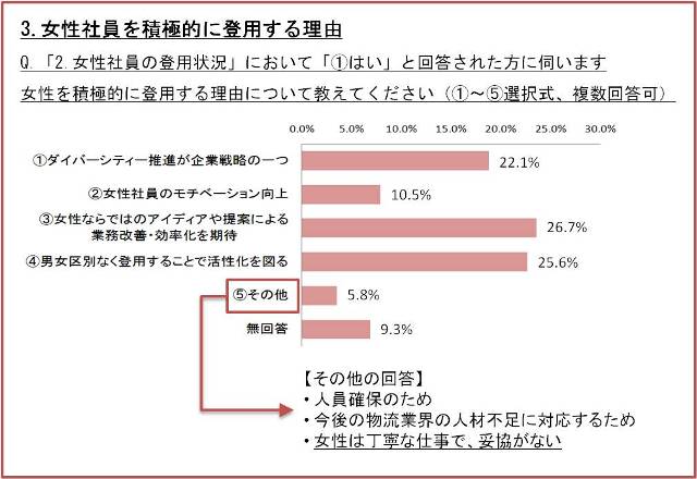 (3)物流企業は、女性社員を積極的に登用している