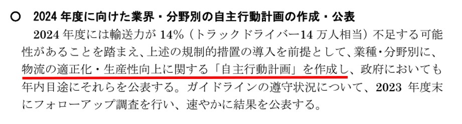 物流の2024年問題解決に向け、政府は自主行動計画の策定を呼び掛けています。