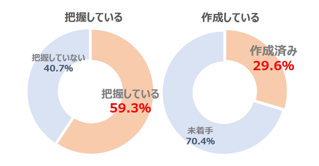 以前、弊社が荷主企業を対象に実施したアンケートの結果を見ると、自主行動計画について把握している企業は約60%でした。対して、実際に策定にまで至っている企業は約30%であり、ほとんどの企業が未着手であることが分かります(図2)。