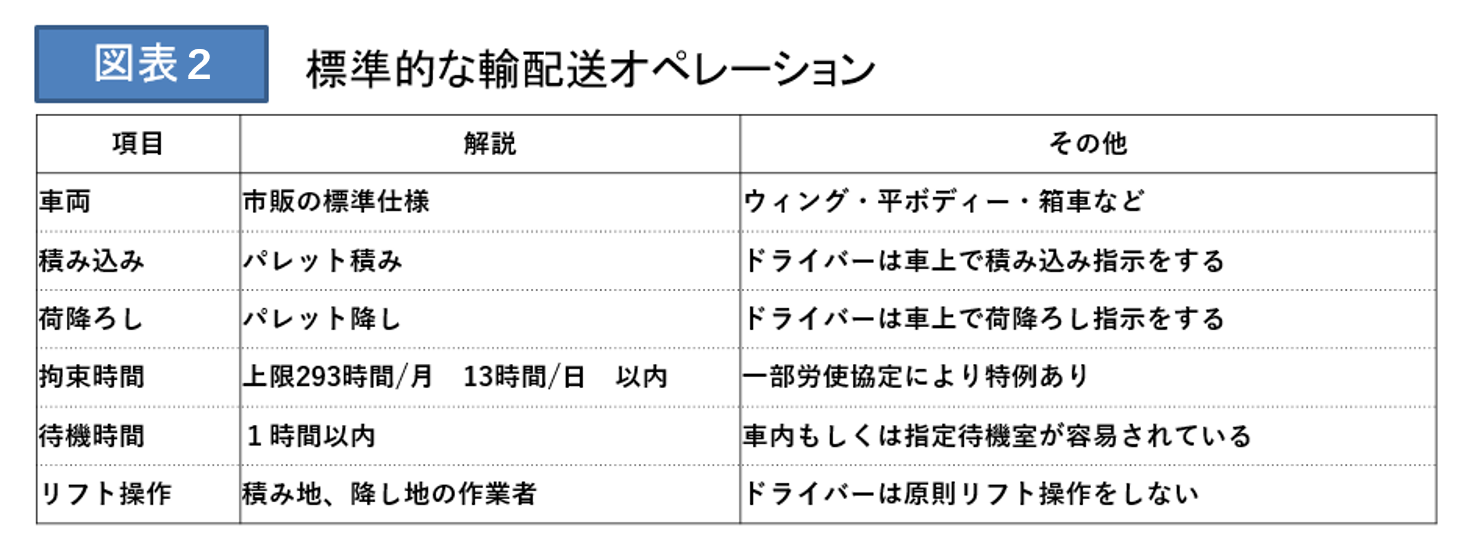 いつでも誰でも運べる標準化された輸配送オペレーション(図表2)にはまだ猶予が残されています。