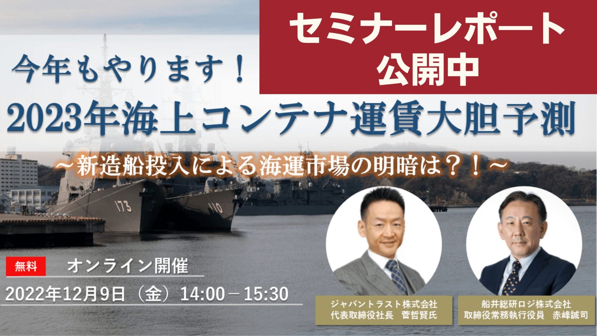 2022年はウクライナ情勢の影響、燃料価格の高騰、さらには世界的なインフレが加速し、賃金アップを求めるストライキが世界各国で頻発しました。2022年より明るい兆しが見えつつある、2023年の海運市場において、今やるべきことは何か。海運市場の動向を交えながら海運市場のプロがお伝えしました。