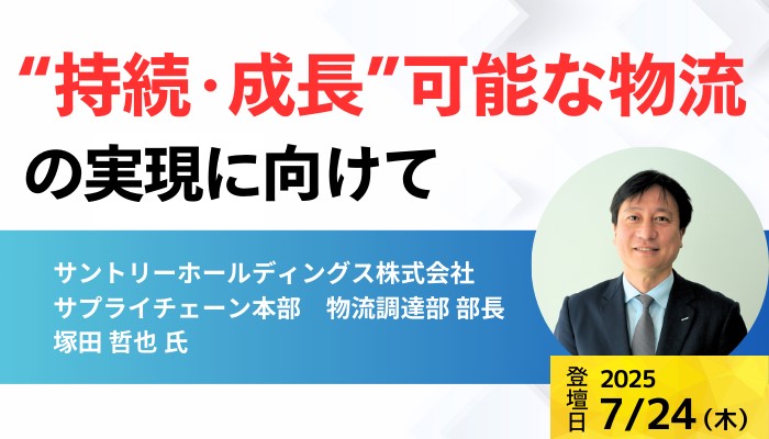 2025年7月24日(木)には、製造業・小売業の物流責任者様限定の勉強会「ロジスティクス・リーダーシップ・サロン」を開催します。ここでは、ゲスト講師にサントリーホールディングス株式会社 サプライチェーン本部 調達本部 物流調達 部長の塚田哲也様をお迎えします。